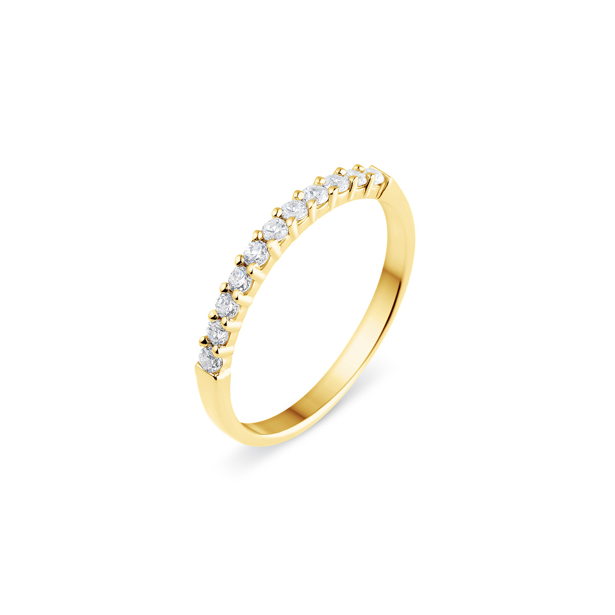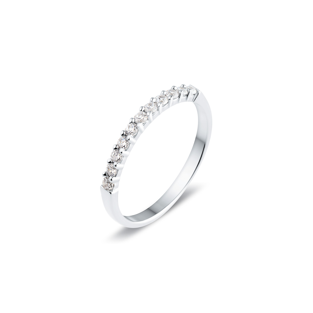 This wedding ring features eleven diamonds making almost a half-turn. Two claws between each diamond secure the setting and thus allow the diamonds to shine with all their strength.
