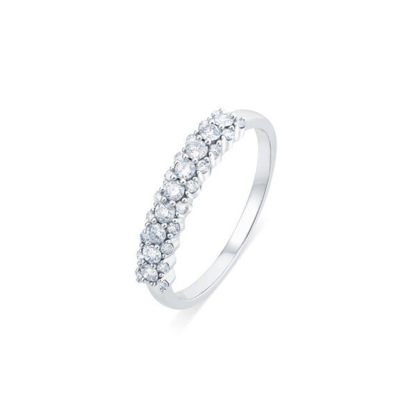 This half wedding ring is made up of a pretty braid of diamonds set between prongs. Very delicate, the brilliance of the diamonds illuminates this pretty ring.