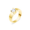 Called “solitaire”, this ring is the symbol of love par excellence. The diamond sits in the center: enhanced by a gold setting, it sparkles with a thousand lights. This contemporary style solitaire has a diamond set on an imposing bezel with four secure prongs allowing the diamond to shine in all its brilliance. Our manufacturing method is in the purest respect for tradition.