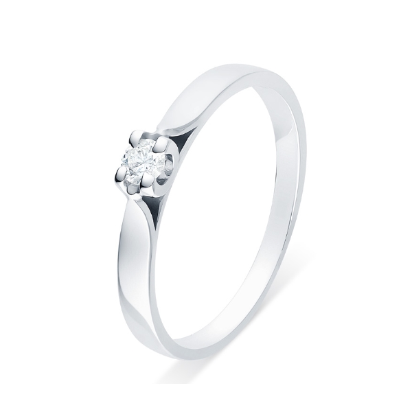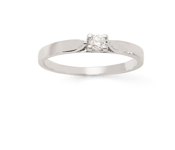 “Elza” ribbon solitaire, diamond set on four prongs 0.10 carat