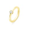 Called “solitaire”, this ring is the symbol of love par excellence. The diamond sits in the center: enhanced by a gold setting, it sparkles with a thousand lights. This classic solitaire has a diamond set on an openwork bezel, six secure prongs allow the diamond to shine in all its brilliance. Our manufacturing method is in the purest respect for tradition.